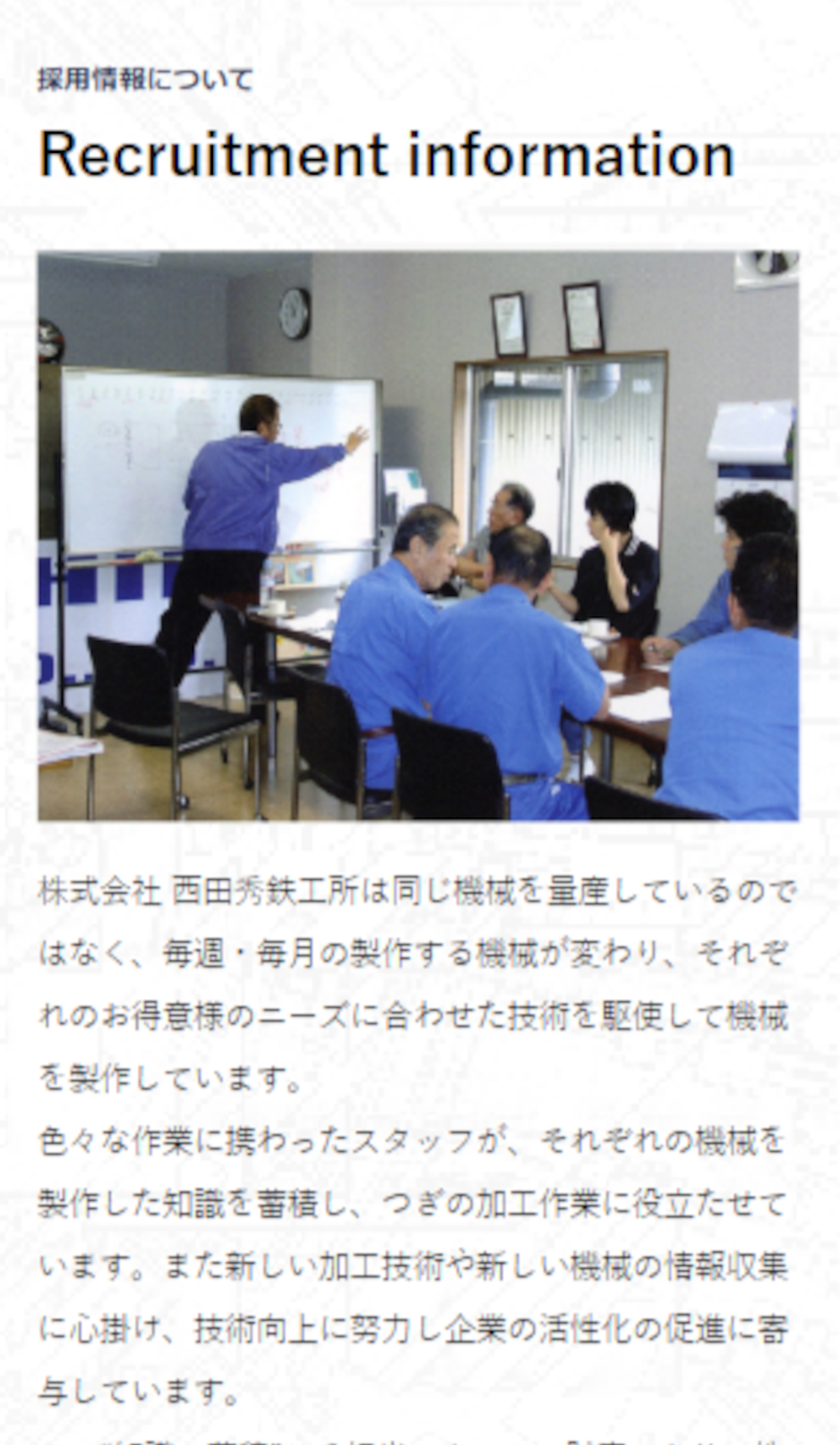 機械のパーツを制作されている会社様で、作った製品は公表できないものが多いので、どのような設備があるかが分かりやすいよう表にして掲載しました。