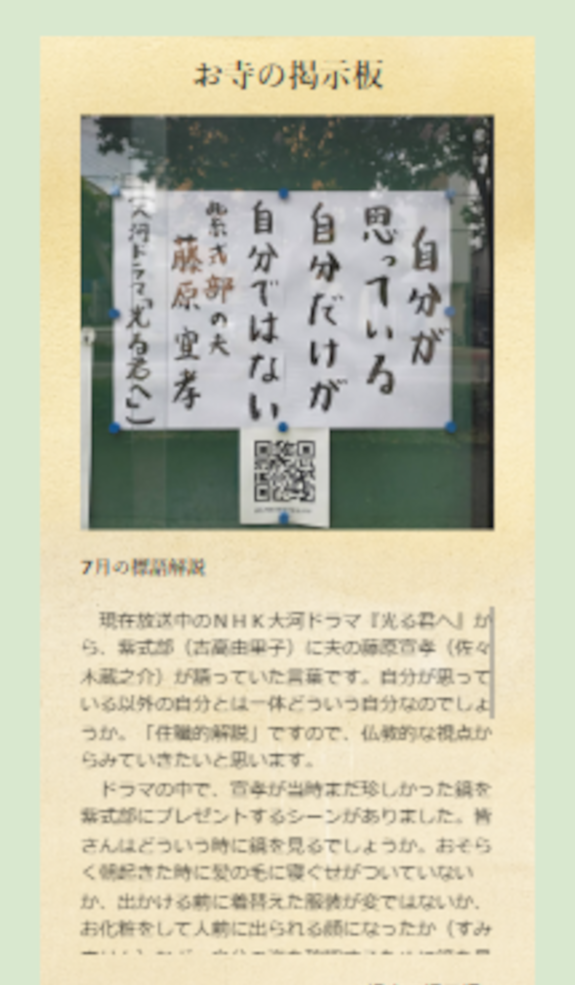 掲示板が地域で注目をあつめているお寺です。