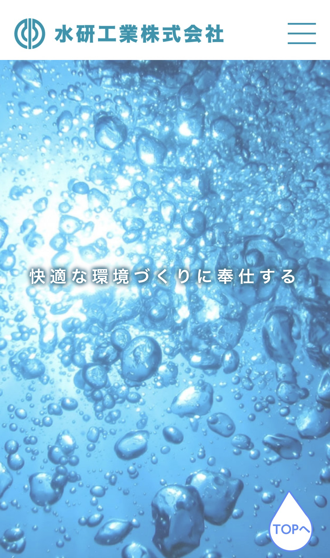 給排水設備や浄化槽設備の会社様で、クリーンな水の流れるイメージを意識して制作しました。