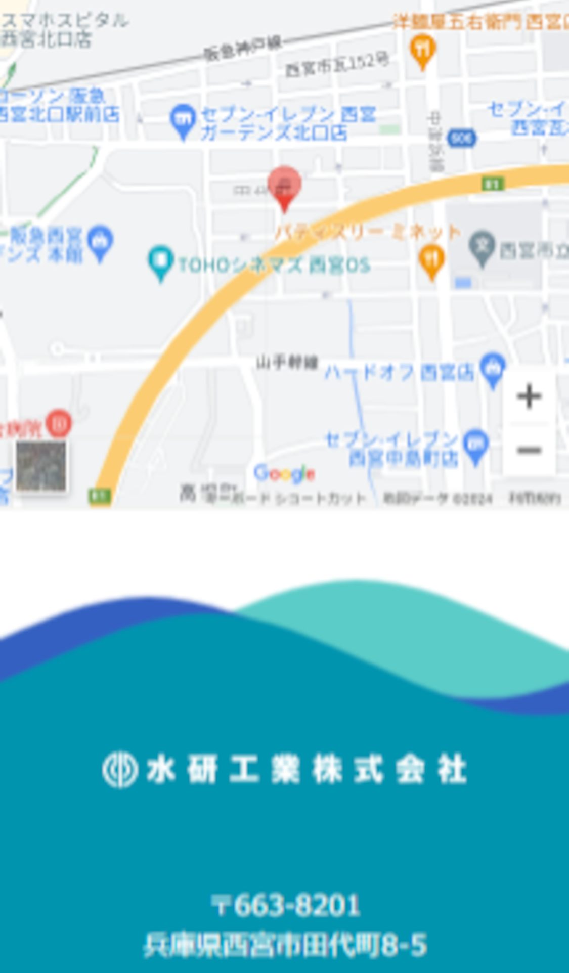 水がきれいな海に帰っていく環境を意識した会社なので、フッターは波のアニメーションが入るようにしました。